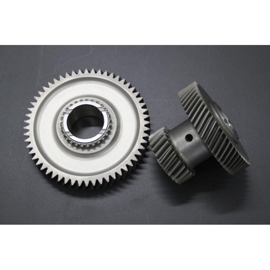 商品情報 ジムニーダウンギア 『ロックライノ』 当社ラージバレー オリジナル です オフロード走行などを行う時タイヤサイズを純正より外径の大きなものに変更するのは定番です でも純正トランスファーギア比でタイヤ外径を大きくしてしまうとトルクが激減し思うように回転数が上がらず、走破性が極端に落ちてしまいます またMT車で、半クラッチでタイヤを回転させると、すぐにクラッチをダメにしてしまいます。 そこで当社開発のトランスファー ダウンギアを装着すると LOWレンジ側が純正減速比より約66%ダウンします。HIレンジは変わらずそのままなので、一般道走行時も快適です。オフロード走行(ローギア使用時) のみギア比ダウンになり、走破性がアップします。 装着後のギアの音鳴りを極力軽減するため、ギア山部加工済み。オフローダー必須アイテムです。 適合車種 JA11・71・12C・12V(純正トランスファー) スペック 【 純正トランスファー 】 HIレンジ:1.58 / LOWレンジ:2.51 【 当社ダウンギア 】 HIレンジ:1.58 / LOWレンジ:4.16 トランスファー組み込み工賃作業も可能ご希望な方は商品ご購入まえに当社までお問い合わせください |
