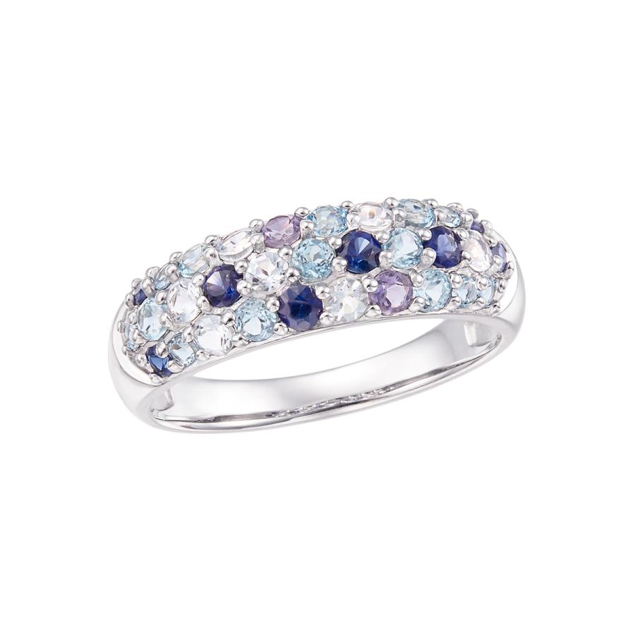 商品情報 ブルー系のカラーストーンの魅力をたっぷり楽しめる、クールなパヴェリング。 エレガントであり、個性的でもある、いつものファッションのアクセントになるデザインです。 地金素材:K10WG 使用宝石:サファイア・アイオライト・ブルートパーズ・アクアマリン 幅:約2.5〜5.5mm |