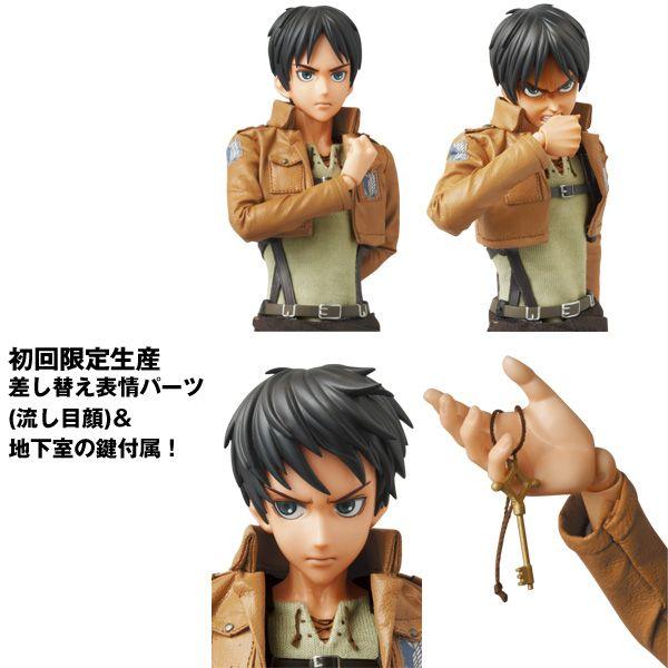 商品情報 初回生産限定 差し替え表情パーツ(流し目顔)& 地下室の鍵付属! 原型製作 PERFECT-STUDIO 衣装製作 秋元みえこ 全高約300mm アニメ『進撃の巨人』より、 主人公「エレン・イェーガー」をRAHで立体化! PVC製頭部は差し替え可能な2種類の表情パーツと、 前髪パーツも2種類付属で、4種類の組み合わせが可能! コスチュームは劇中の質感をリアルに再現! 調査兵団のマントも付属! 立体機動装置は劇中の設定を徹底再現! 刃の着脱も可能! 新規開発の素体を使用し、 プロポーションの再現と可動を両立! 各種手首付属! 可動式フィギュアスタンド付属! ※監修中のサンプルを撮影しております。 発売商品とは一部異なる場合がございます。 (C) 諫山創・講談社/「進撃の巨人」製作委員会 |